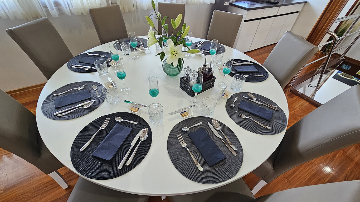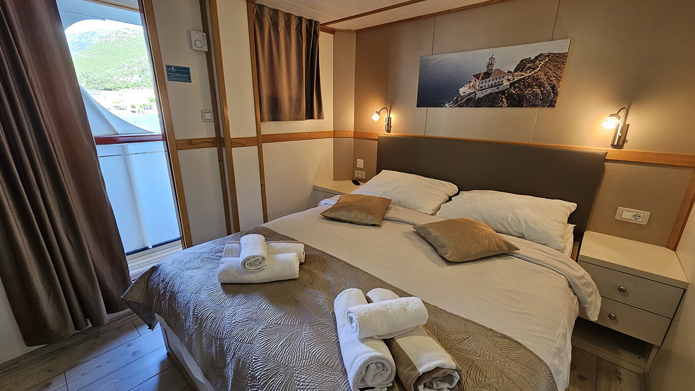 The Adriatic Pearl welcomes up to 36 guests, providing the ideal setting for a comfortable and personalized journey along Croatia’s spectacular coastline. Its 18 air-conditioned cabins are well-appointed with flat-screen TVs, safes, and generous storage space, offering a private and restful retreat throughout the voyage.