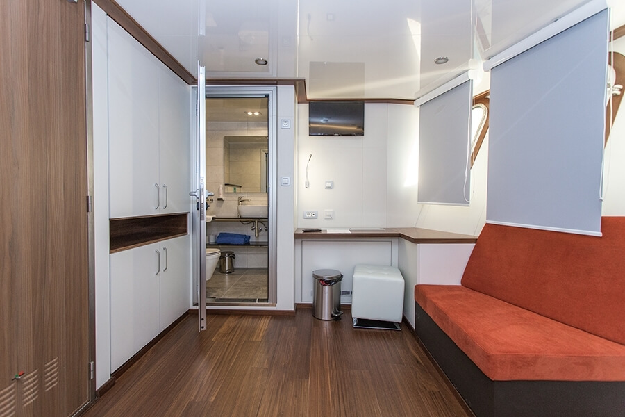 Fully air-conditioned cabins equipped with hairdryer, safe deposit box, LCD TV, internal phone and vanity set.