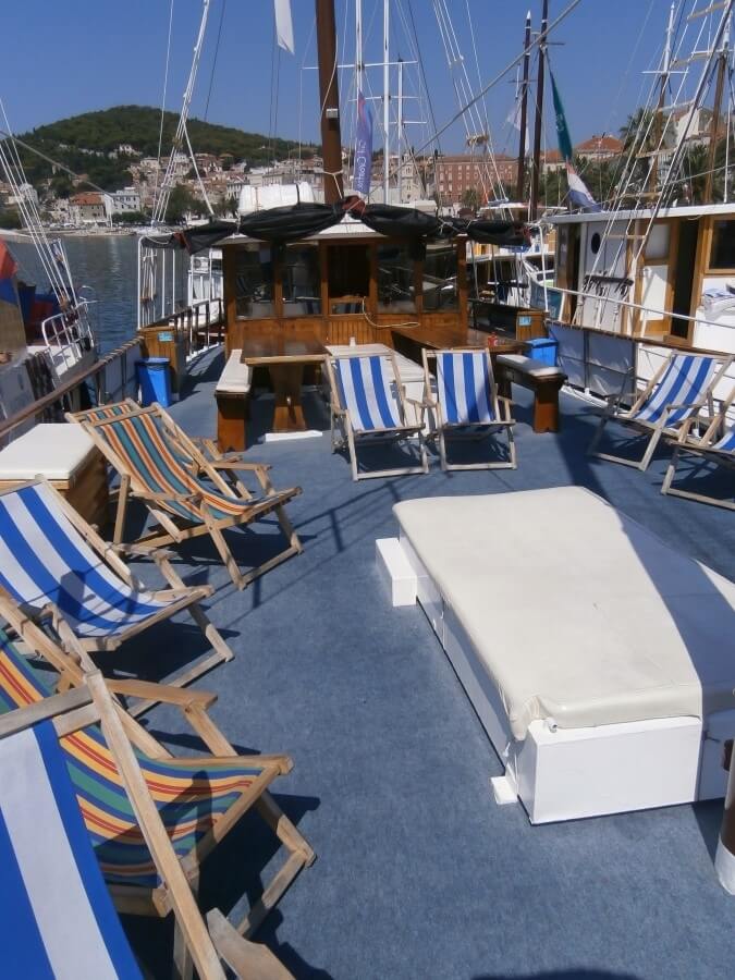 The 80 m² sun deck is the heart of the ship – ideal for soaking up the sun, enjoying sea views, or simply relaxing in good company. Though modest in size, Delija’s charm lies in its ability to access quiet bays and smaller ports that are off-limits to larger vessels, offering a more immersive look at Croatia’s coastal beauty.