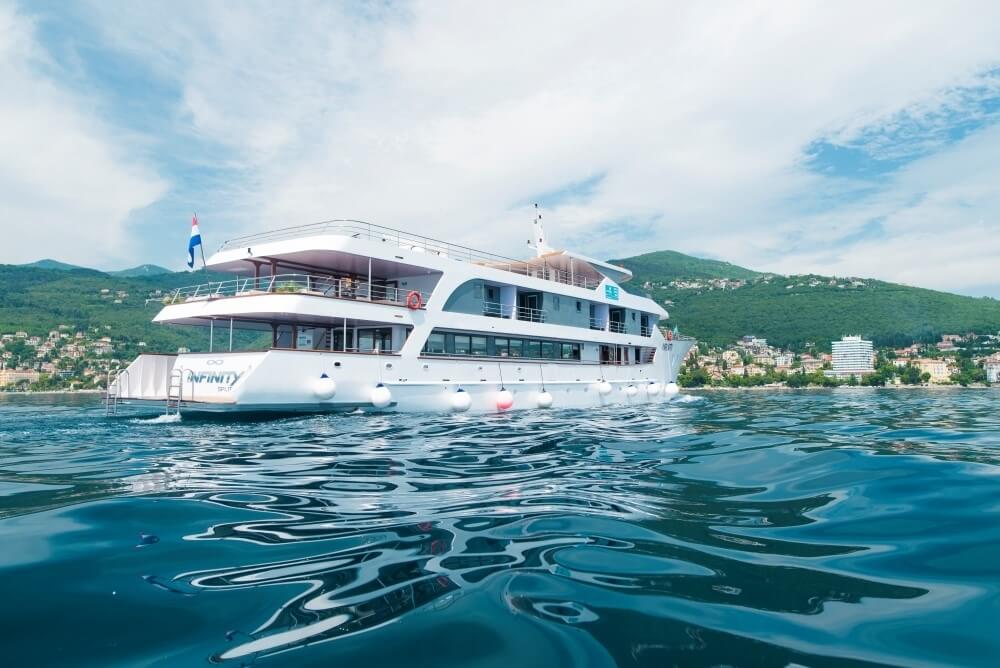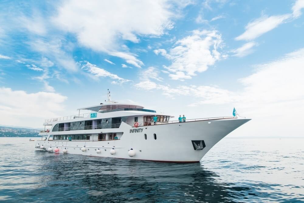 Built in 2016, the MV Infinity is a sleek and contemporary cruise ship designed for deluxe comfort and relaxation. Its spacious cabins are thoughtfully appointed with private en-suite bathrooms, air conditioning, and modern furnishings, creating a peaceful retreat after a day of exploration. For an added touch of indulgence, the ship features 9 VIP cabins with private balconies – perfect for taking in uninterrupted views of the Adriatic’s crystal-clear waters and coastal charm.