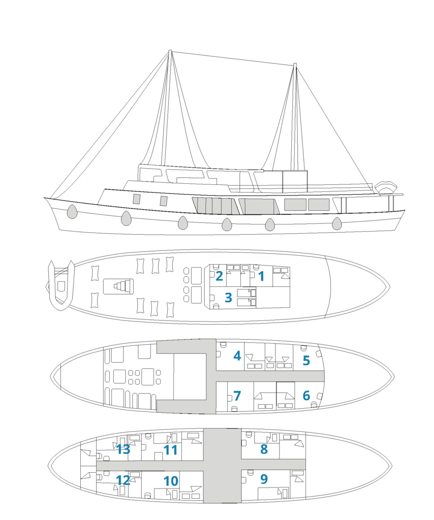 Leonardo is a premium vessel designed to provide a refined cruising experience along the stunning Adriatic coast. Its well-appointed, air-conditioned cabins each include a private en-suite bathroom, offering guests a quiet and comfortable retreat after a day of exploration.