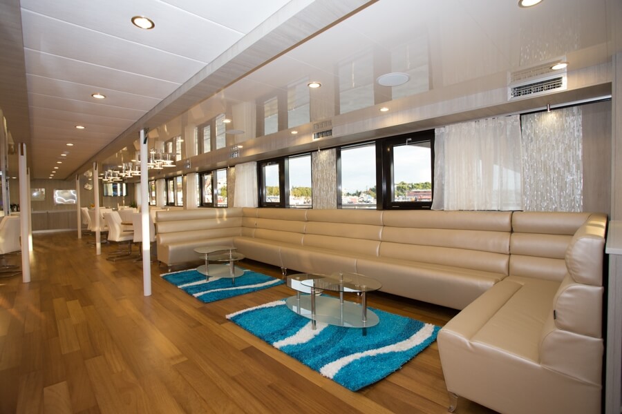 Inside, a spacious lounge and elegant bar area create the perfect setting for relaxation and socialising. Throughout the cruise, the professional and attentive crew is dedicated to providing warm, personalised service – making every moment aboard the Maritimo feel effortlessly special.