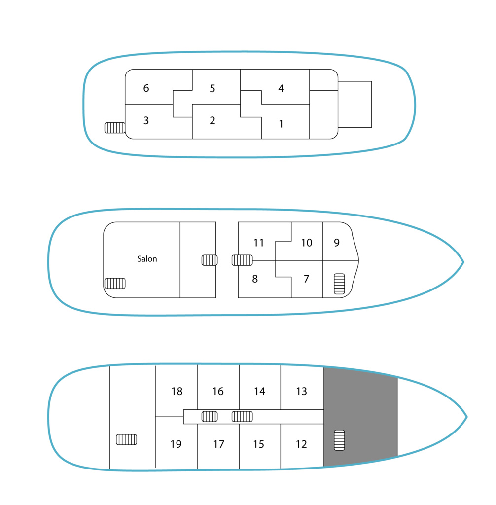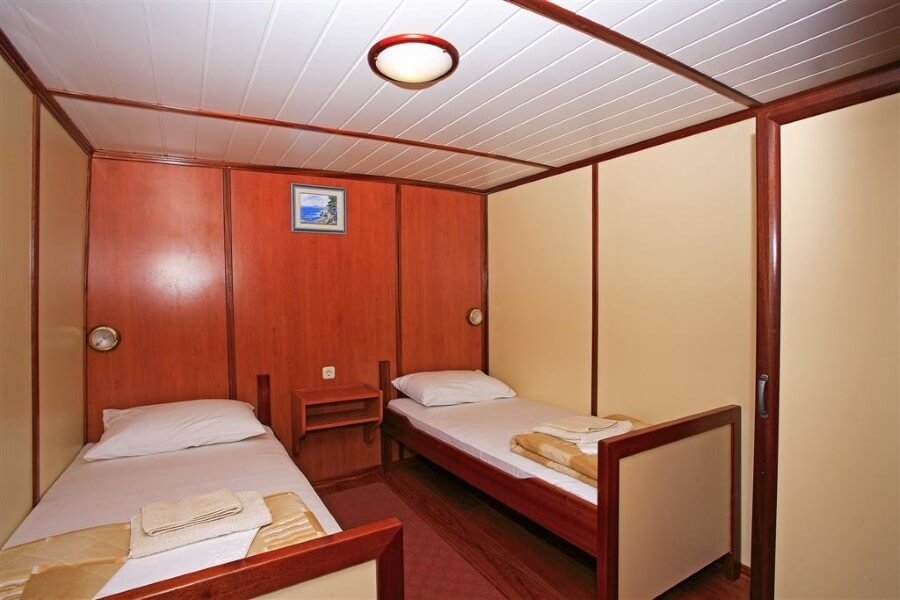 Meridijan provides a smooth and relaxed cruising experience, ideal for travellers seeking comfort and coastal discovery. Its modern, air-conditioned cabins each include a private en-suite bathroom, creating a restful retreat after sun-filled days exploring the Adriatic.