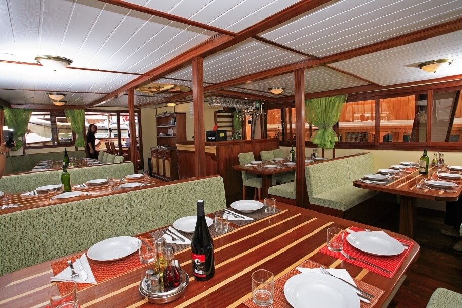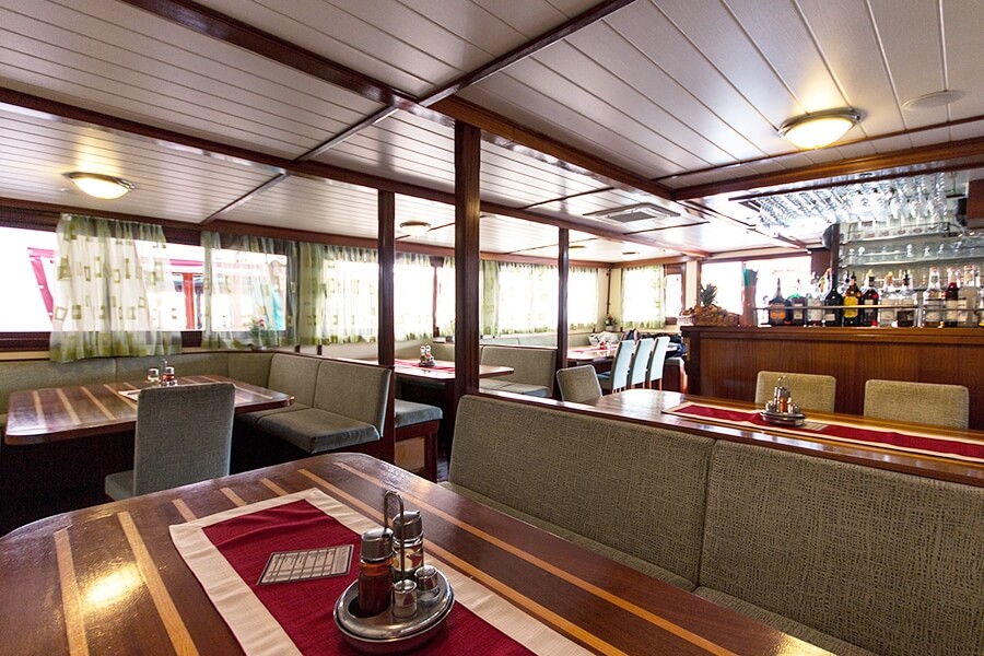 Meals on board are a true pleasure, freshly prepared with local ingredients and served in a stylish and welcoming dining area that reflects the region’s culinary traditions.