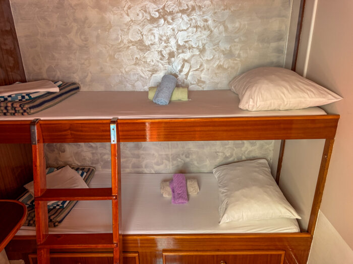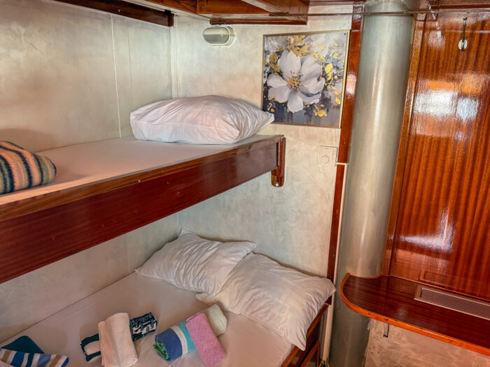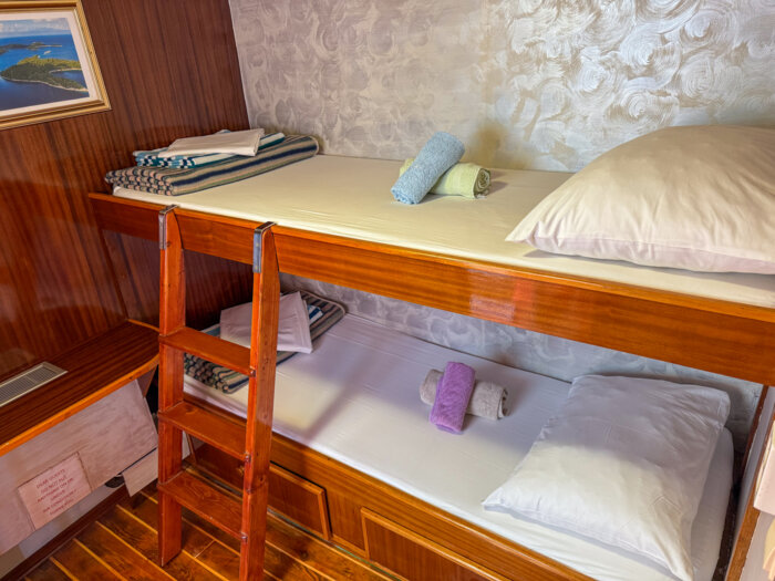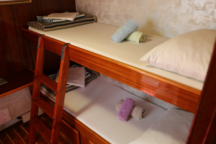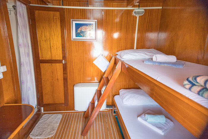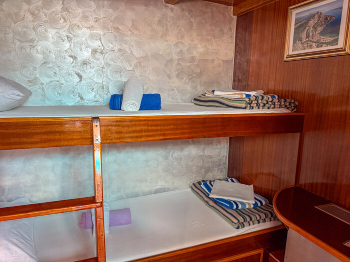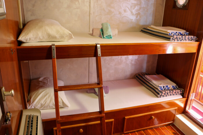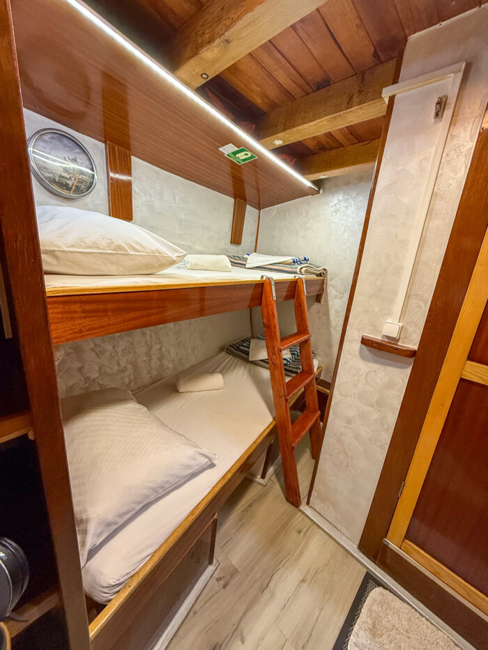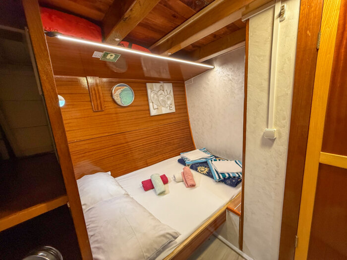 At 24 meters in length and 6.8 meters wide, Moja Maja is a cozy and welcoming vessel designed for intimate cruising along Croatia’s scenic shores. With 12 guest cabins located across the main and lower decks, the ship offers a mix of double and bunk bed configurations, providing simple yet comfortable accommodation with private en-suite bathrooms.