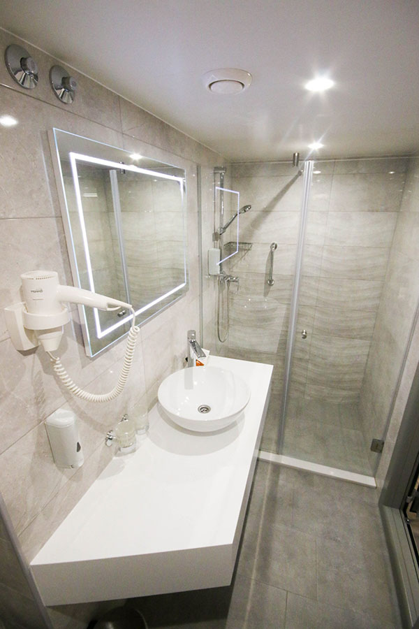 Fully air-conditioned cabins equipped with hairdryer, safe deposit box, LCD TV, internal phone and vanity set.
