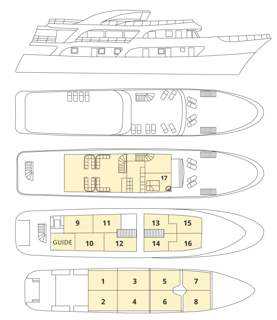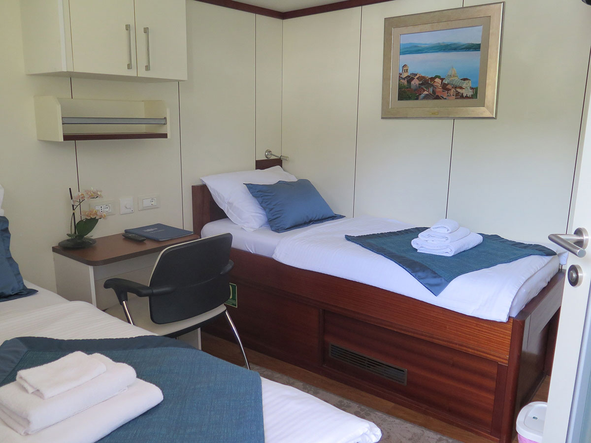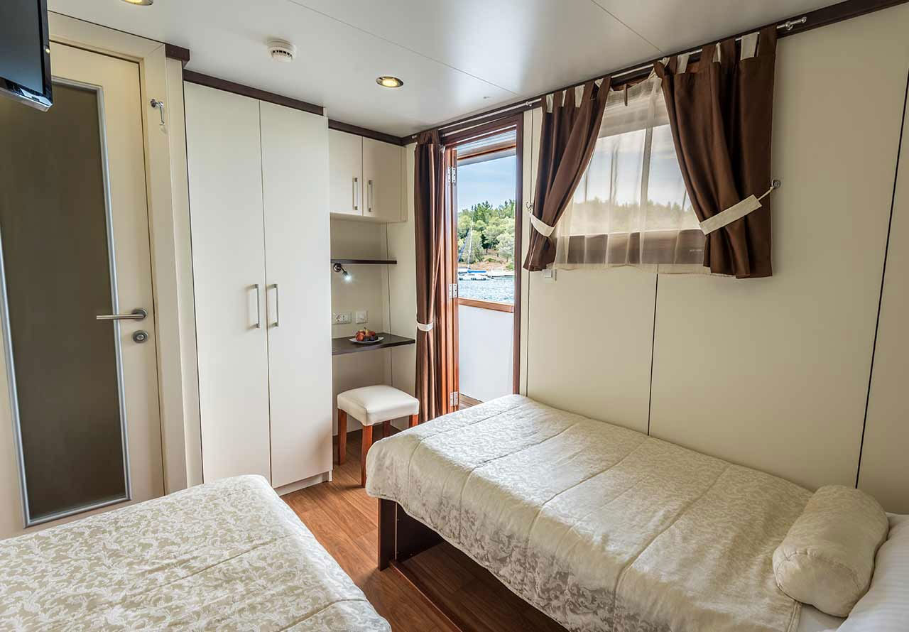 The Olmissum is a modern premium superior motor vessel offering a relaxing and scenic way to experience Croatia’s stunning coastline. Its air-conditioned cabins are thoughtfully designed, each featuring a private en-suite bathroom and contemporary amenities to ensure a peaceful and enjoyable stay.