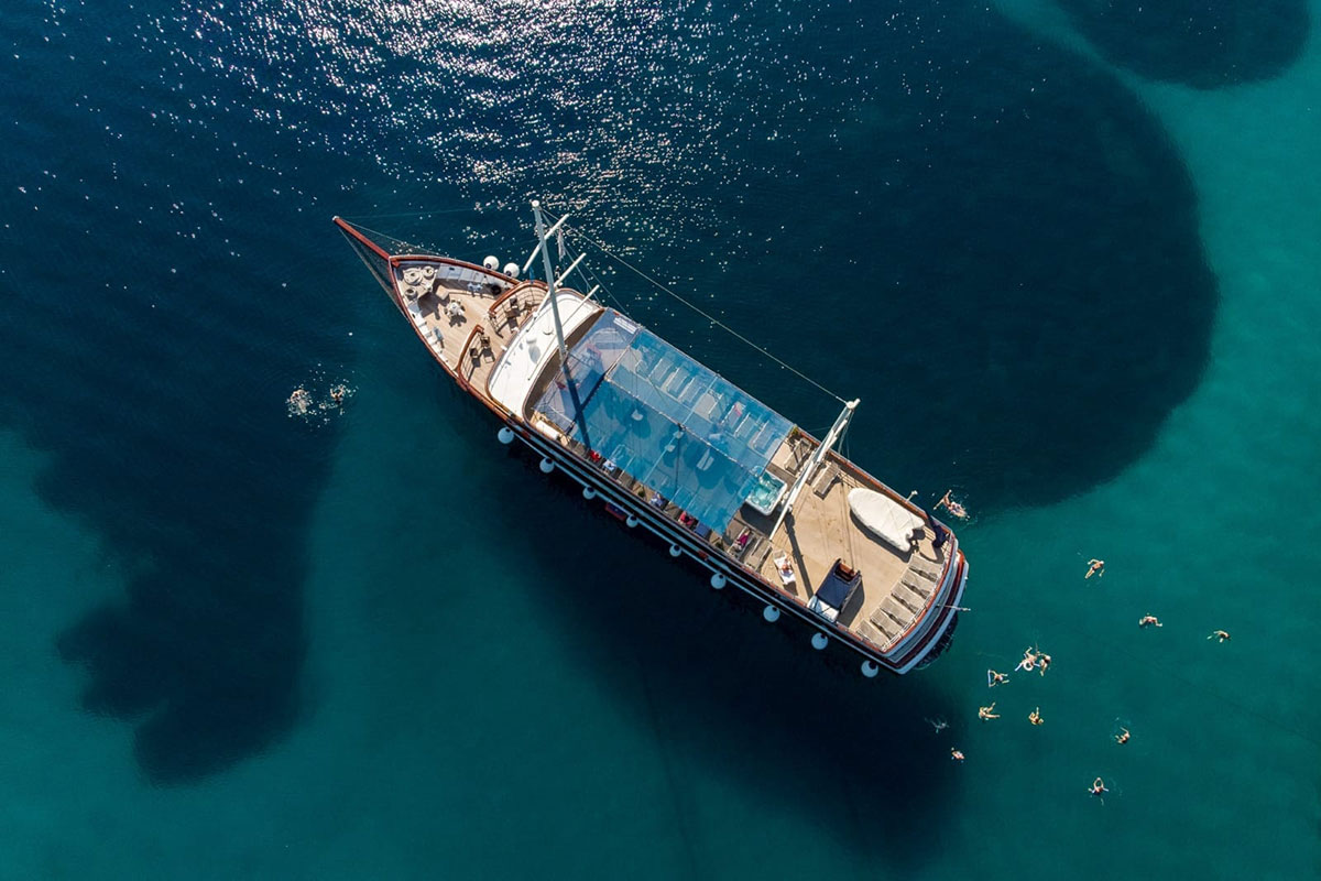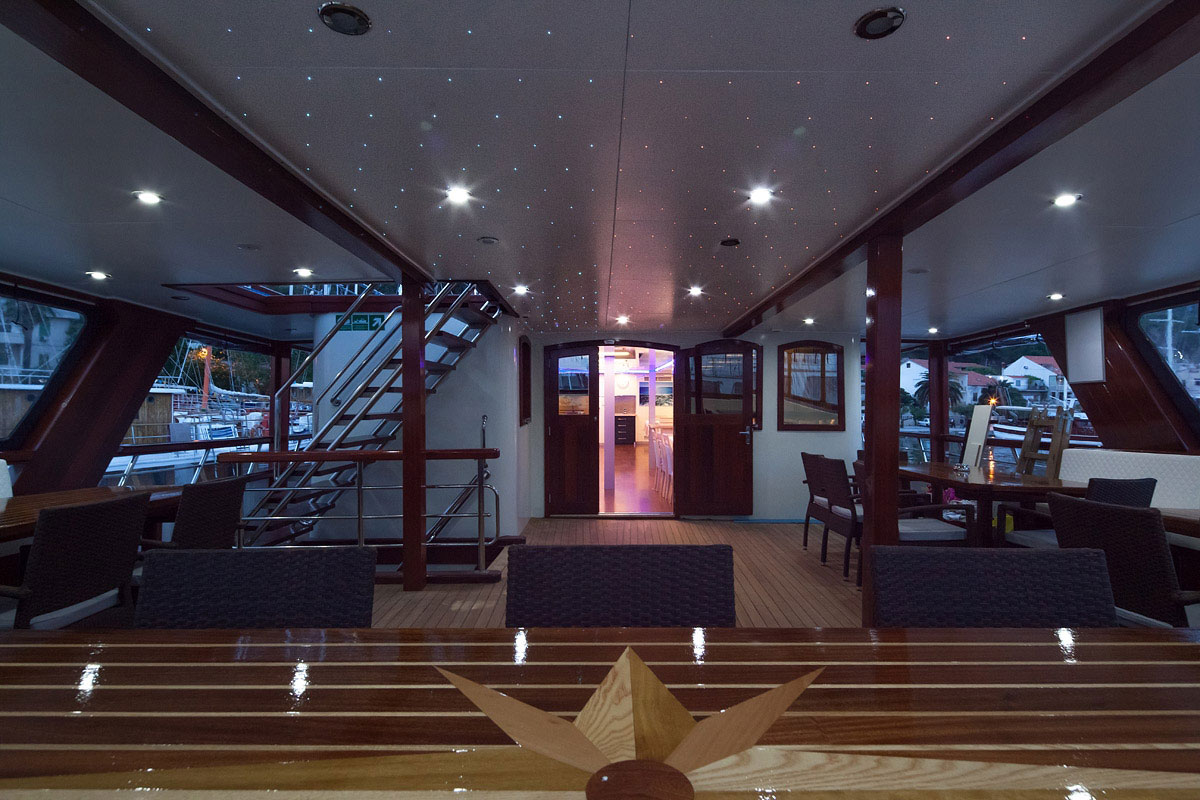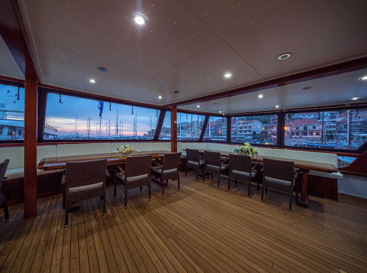 The sun deck is the perfect spot to relax, complete with a jacuzzi and sun loungers where guests can enjoy warm Mediterranean breezes and panoramic views of the Adriatic’s sparkling waters.