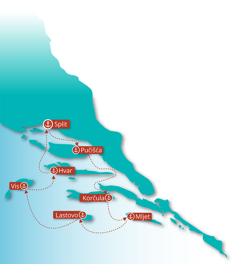 Island Myths and Legends cruise is starting in Split and ending in Split and offers a complete experience of Dalmatian archipelago.