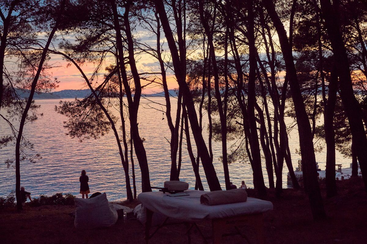 Surrounded by pine trees and crystal clear sea, Obonjan Island camp offers an outdoor pool and air-conditioned tents. Admission to various Obonjan events is included in price and features are music, cinema, gastronomy, art, sports and well-being.